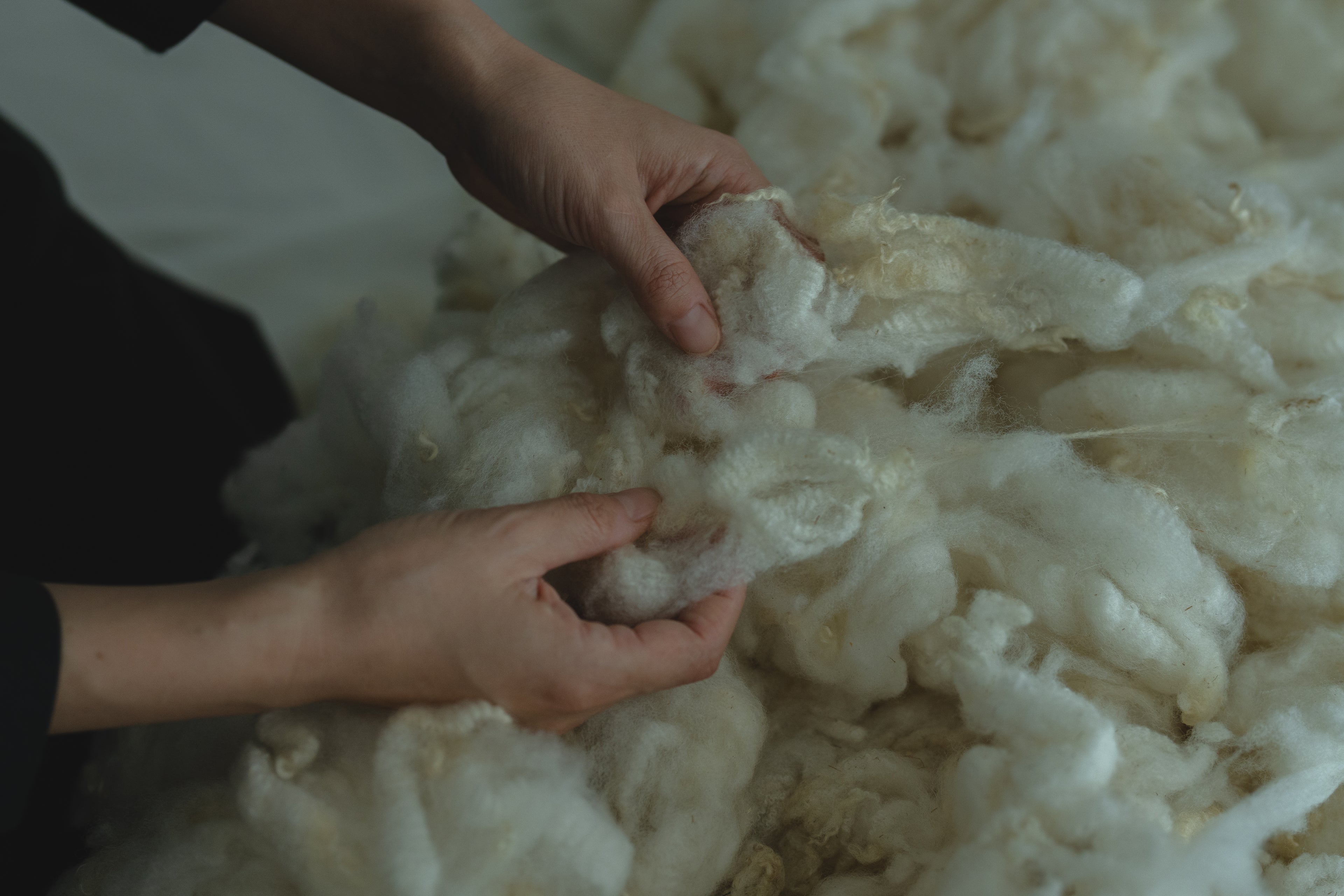 "未" is a hieroglyph that expresses the shape of a growing tree, and means sheep. Following this, we aim to draw out the beauty of wool from within.